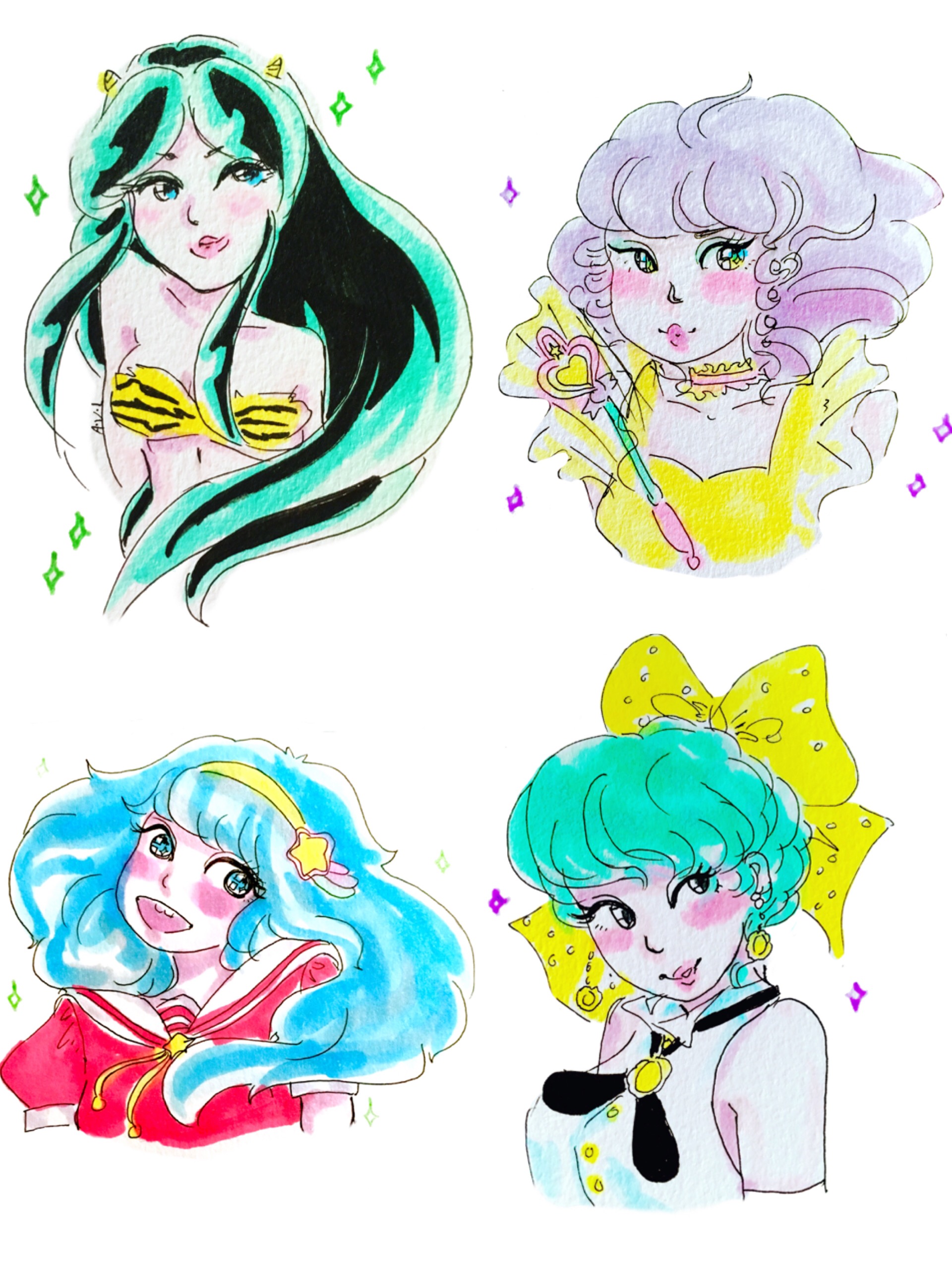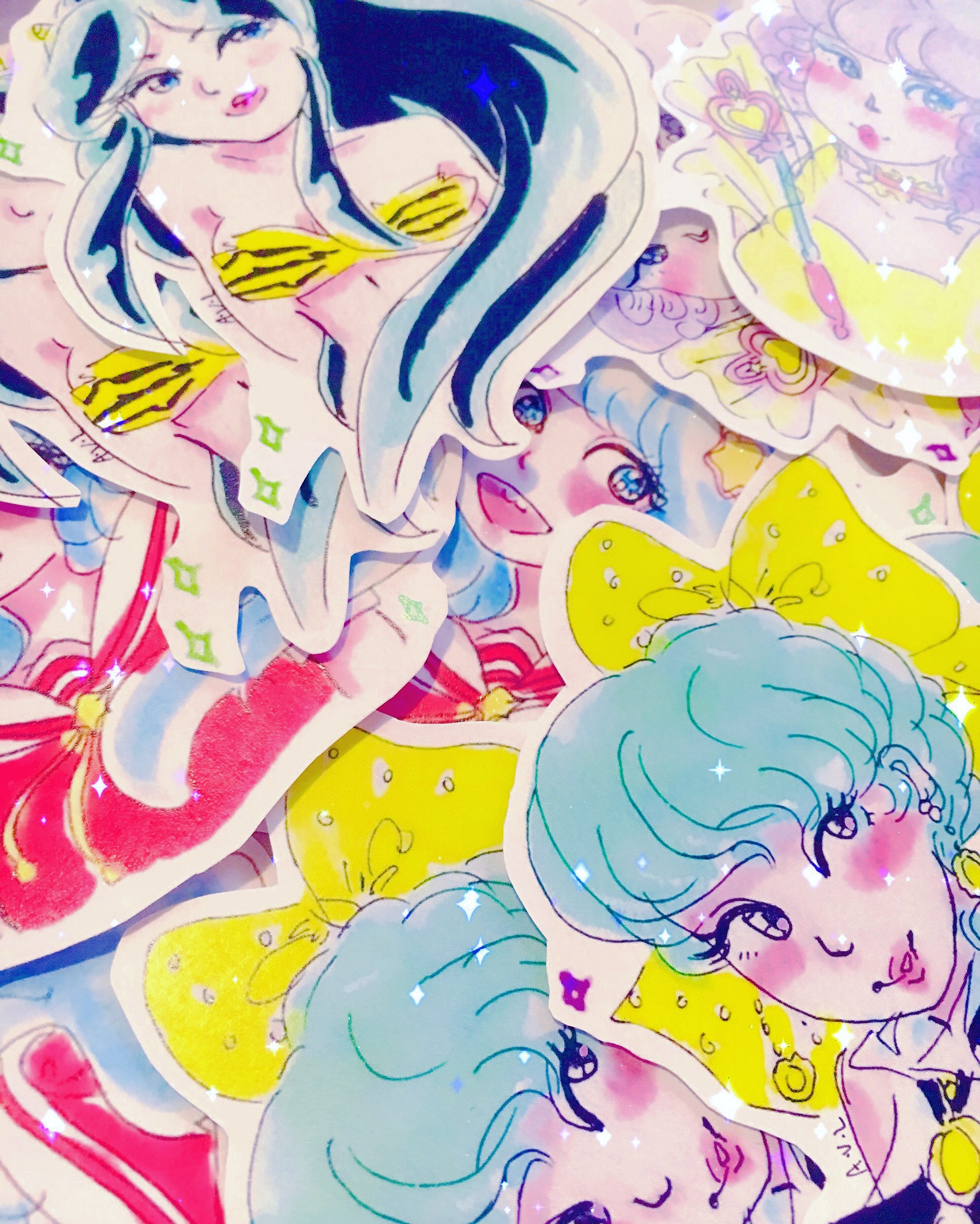 Lum Invader, Creamy Mami, Magical Emi, and Magical Fairy Persia all together! Features one of each sticker. ON SALE! normally priced $12!