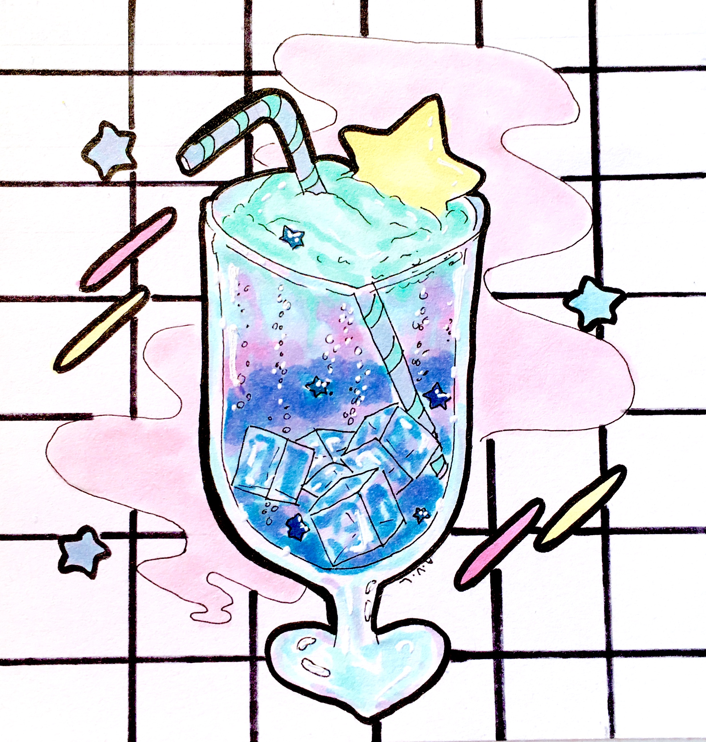 All four 5" x 5" prints in the Soda Float series. 4 sweet fizzy prints on cardstock of magical, fantastic 80s style fizzy treats!